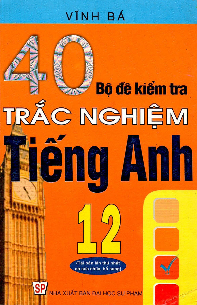 40 bộ đề kiểm tra trắc nghiệm tiếng Anh 12, Vĩnh Bá 368 trang Báo giá: Bản mềm PDF: 40k | Mua bản mềm Online: